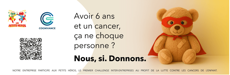 Chaque année en France, 2 500 enfants sont diagnostiqués d’un cancer. À travers le challenge Les Petits Héros, Cognivance rejoint un collectif d’entreprises engagées pour financer la recherche, améliorer les soins et soutenir les familles.